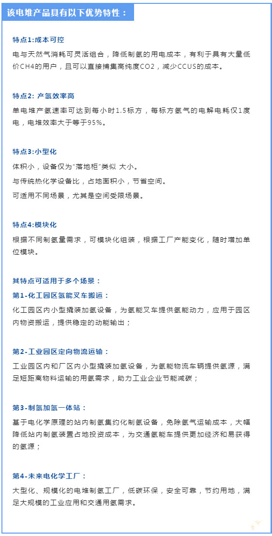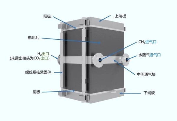 C C-SOEC-CH4电解水耦合天然气制氢设备,极具潜力的蓝氢生产方式。是电堆科技在高温固体氧化物SOEC电解水制氢基础上进行的创新性技术,在电解水的过程中加入甲烷,起到辅助活化作用,提升反应活性,电解生产氢气及可直接捕获的高纯度二氧化碳。